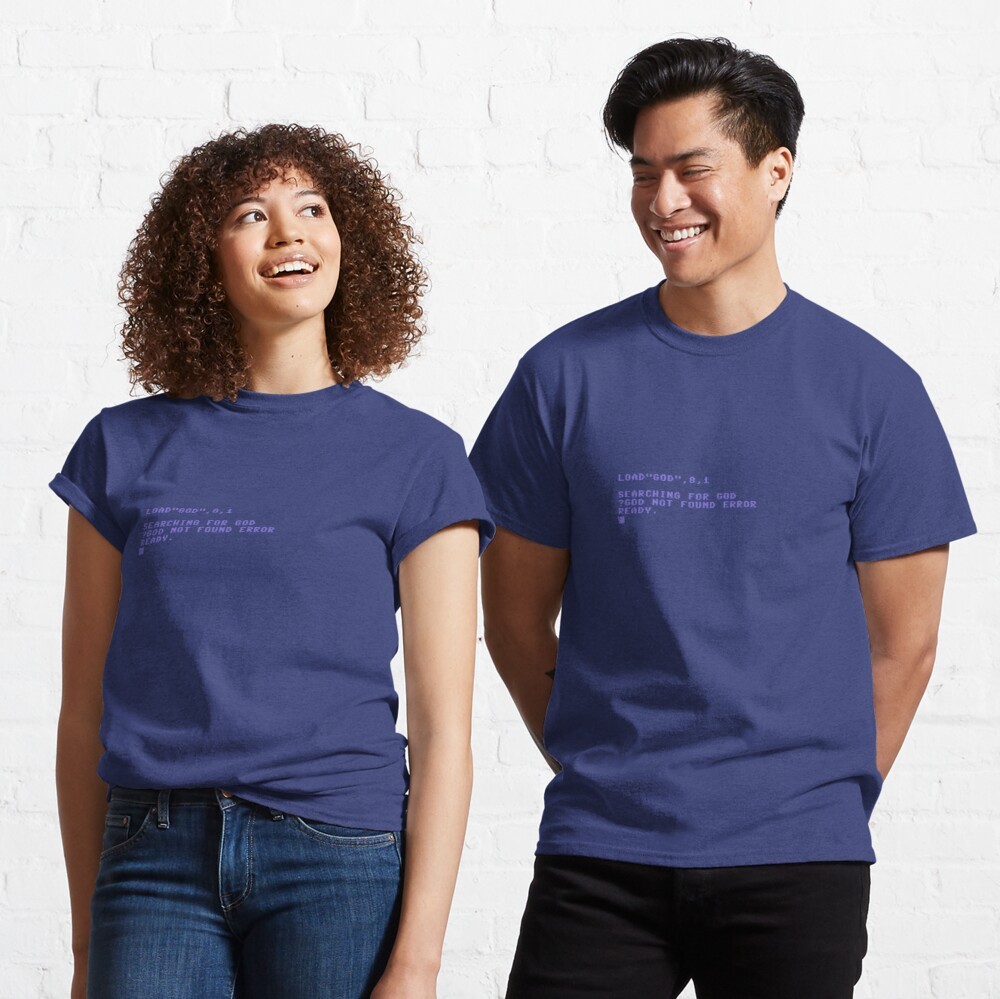 God not found - well if a trusty Commodore 64 can't find God what more is there to say! Perfect t-shirt design for the retro computer loving atheist!
